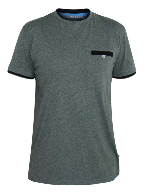 The Duke Clothing Co's "NELLY-1-D555 T-shirt With Double Layer On Neck and Pocket" is a stylish and unique t-shirt for men. Specifically, in the color Khaki Marl, the shirt features a blend of khaki and green shades, creating a trendy and versatile hue.
