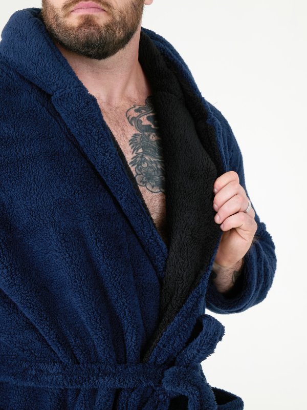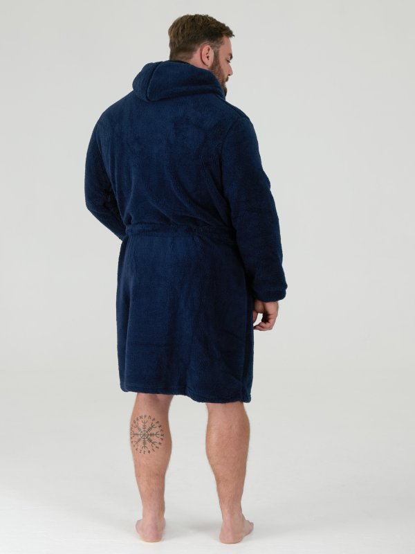 The dressing gown features a hood, which adds an extra layer of warmth and comfort to your lounging experience. The hood is lined with the same soft material as the rest of the gown, and it's large enough to comfortably fit around your head without feeling tight or constricting.