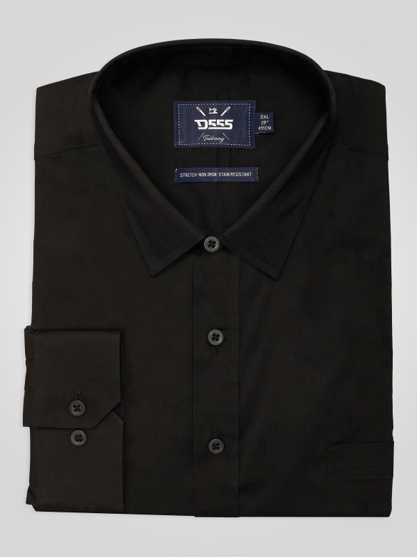 The D555 OLIVER Long Sleeve Stretch Shirt redefines effortless smart dressing for the modern man. Designed in a sleek black finish, it’s crafted from a premium poly-cotton spandex blend that offers ultimate stain resistance, non-iron convenience, and 2-way stretch comfort. This versatile piece ensures you look sharp from morning meetings to evening occasions, with its tailored silhouette, extra cufflink option, and durable, easy-care finish making it a must-have for every wardrobe.