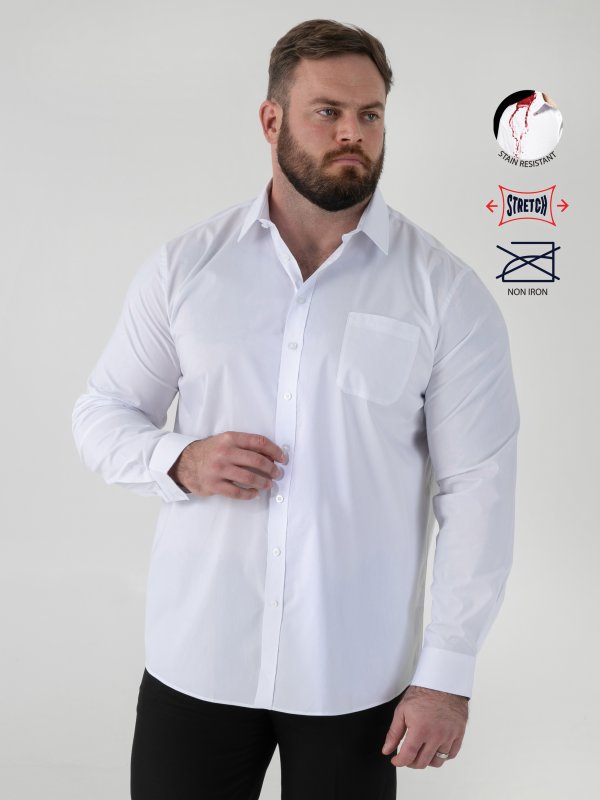 The D555 OLIVER Long Sleeve Stretch Shirt redefines effortless smart dressing for the modern man. Designed in a sleek black finish, it’s crafted from a premium poly-cotton spandex blend that offers ultimate stain resistance, non-iron convenience, and 2-way stretch comfort. This versatile piece ensures you look sharp from morning meetings to evening occasions, with its tailored silhouette, extra cufflink option, and durable, easy-care finish making it a must-have for every wardrobe.