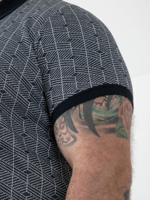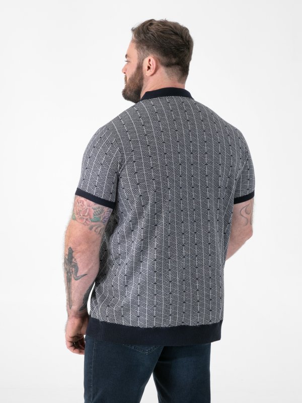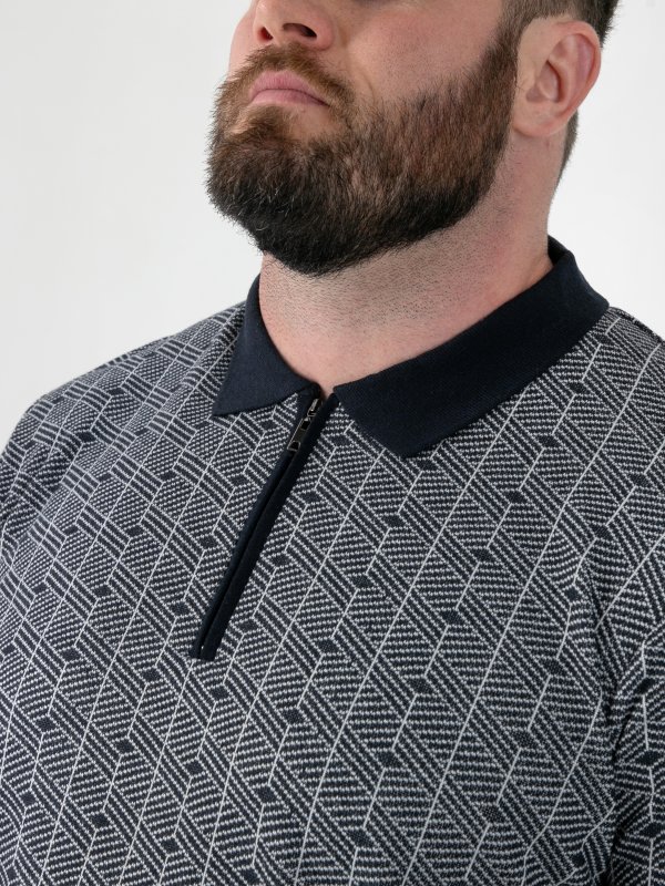PERRY-D555 Jacquard Knitted Polo With Quarter Neck Zip