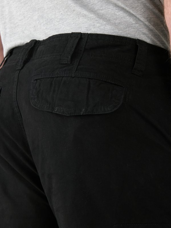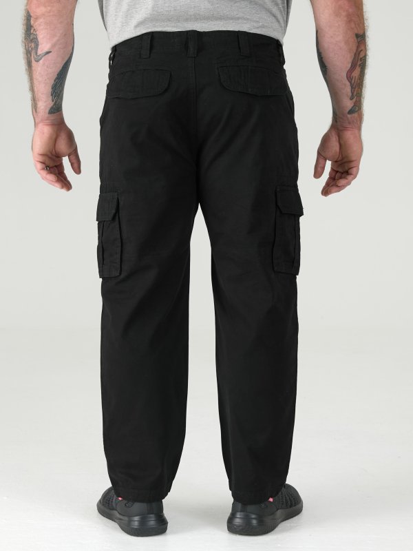 The Duke Clothing Co "ROBERT-D555 Peached and Washed Cotton Cargo Trousers" is a stylish and comfortable pair of cargo trousers made from 100% cotton. The trousers are available in black, making them a versatile and timeless addition to your wardrobe.