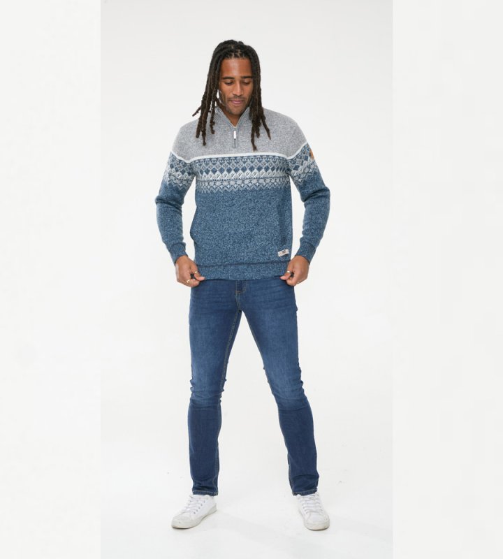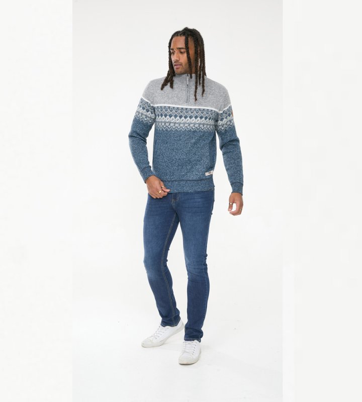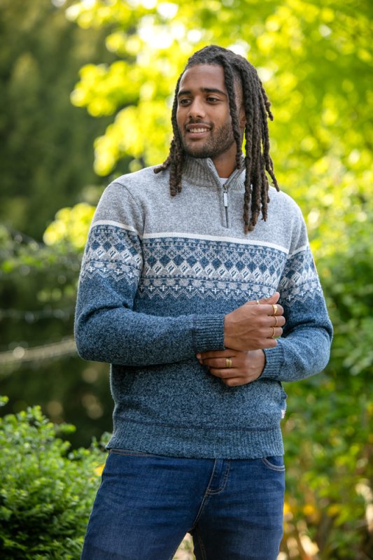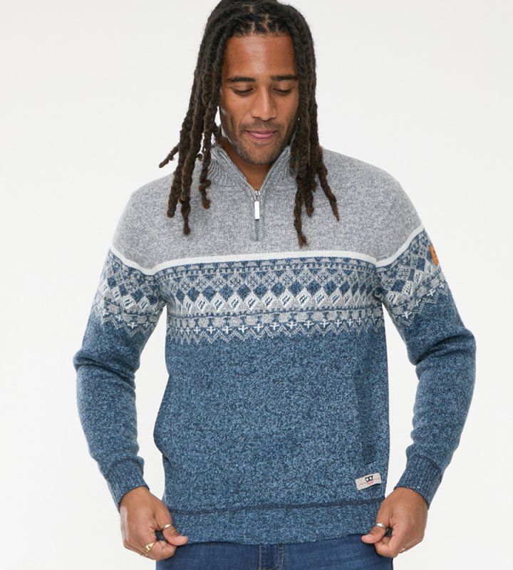 The RUDDINGTON - D555 1/4 Zip Neck Fairisle Knitted Jumper is your go-to choice for a cozy and fashionable look, making it a must-have addition to your wardrobe.