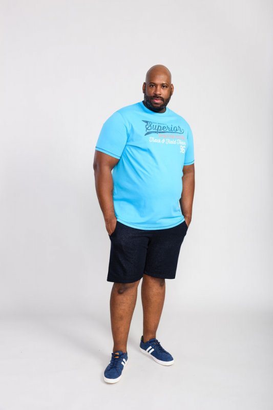 In summary, the Duke Clothing Co "RUSHDEN-D555 Superior Printed T-Shirt" is a high-quality and stylish men's t-shirt made from 100% cotton. It features a printed graphic of the word "Superior" in a bold font, a crew neckline, short sleeves, and a straight hem. The turquoise color adds a cool and refreshing touch to the modern design, making it a versatile addition to any wardrobe. This t-shirt is perfect for casual occasions, adding a unique and stylish element to any outfit.