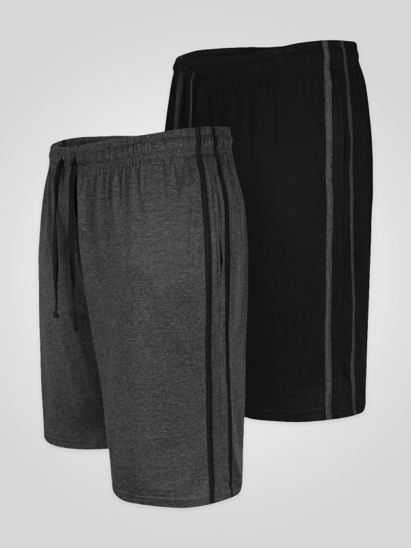 In summary, the Duke Clothing Co "RYAN-D555 Two Pack Elasticated Waist Jersey Short With Side Stripes" is a high-quality and stylish men's short made from a cotton-polyester blend, with 60% cotton and 40% polyester. They come in a pack of two and feature an elasticated waistband with a drawstring, two side pockets, a regular fit, and side stripes. The black/charcoal color combination adds a sleek and modern touch to their classic design, making them a versatile addition to any wardrobe. These shorts are perfect for casual occasions, adding a unique and stylish element to any outfit.
