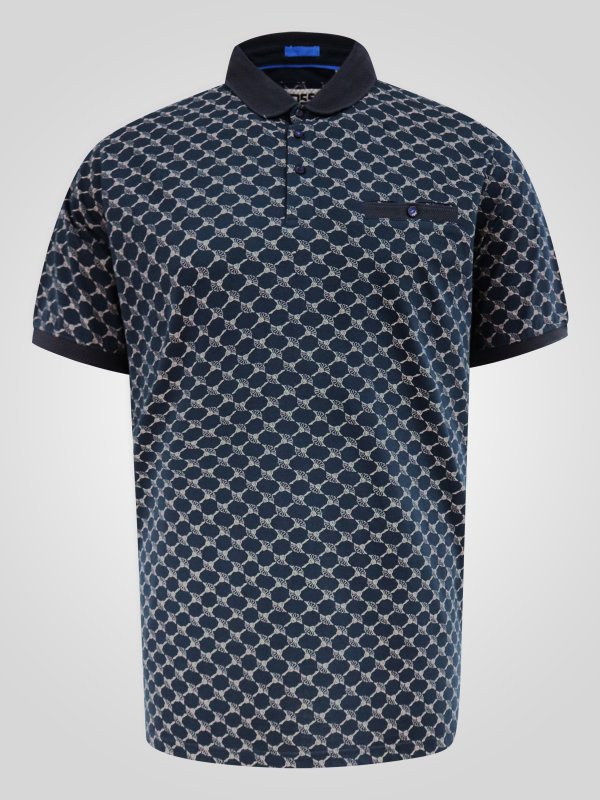 Add a touch of bold sophistication with the D555 SAUNDERS AO Printed Polo – where comfort meets modern flair. Crafted from pure cotton for breathable softness, this short sleeve polo features an all-over print that brings effortless personality to your look. The jacquard collar and cuffs elevate the design with subtle texture, while the chest pocket adds a functional, stylish finish. In a timeless navy tone, this polo transitions seamlessly from relaxed weekends to smart-casual outings.