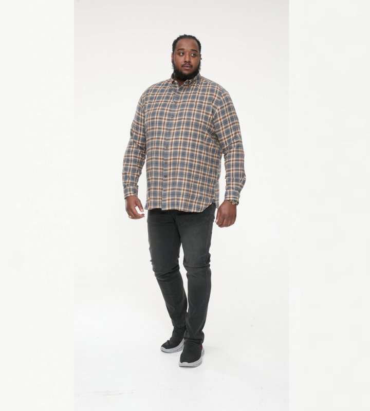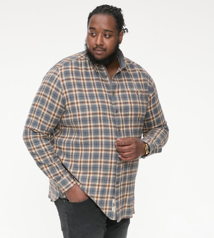 SCARPA-D555 L/S Grey/ Tan Check Shirt With Chest Patch Pocket & Button Down Collar
