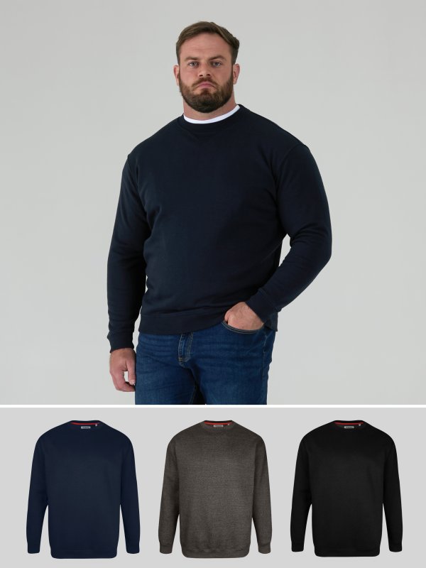 The Duke Clothing Co "SWEAT-D555 Kingsize Crew Neck Sweatshirt" under the D555 brand is a men's sweatshirt designed for comfort and style. It comes in three classic colours: black, navy, and grey, which are suitable for casual and formal occasions. The sweatshirt is available in sizes 1XL to 8XL, making it suitable for men of different sizes and shapes.