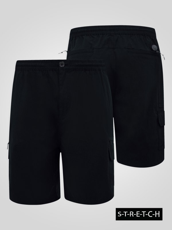Move freely with the D555 THOMAS Full Elastic Waist Stretch Shorts – built for comfort, function, and everyday versatility. Made from a durable cotton–nylon–elastane blend, these shorts combine breathability with just the right amount of stretch to keep you moving comfortably. Designed with a full elastic waistband and adjustable drawcord, they deliver a secure yet flexible fit, while the leg and back zipper pockets provide practical storage for essentials. Finished in a classic black colourway, they’re perfect for active days, travel, or relaxed casual wear.