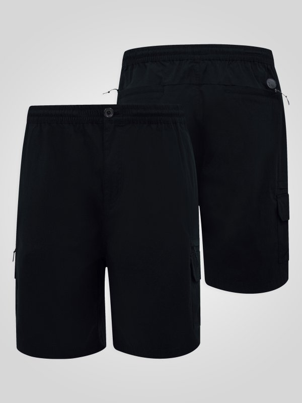 Move freely with the D555 THOMAS Full Elastic Waist Stretch Shorts – built for comfort, function, and everyday versatility. Made from a durable cotton–nylon–elastane blend, these shorts combine breathability with just the right amount of stretch to keep you moving comfortably. Designed with a full elastic waistband and adjustable drawcord, they deliver a secure yet flexible fit, while the leg and back zipper pockets provide practical storage for essentials. Finished in a classic black colourway, they’re perfect for active days, travel, or relaxed casual wear.