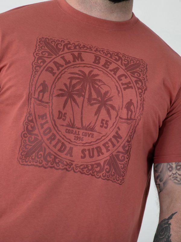 Ride the wave of easy summer style with the D555 TITCHMARSH Florida Surfin’ Tonal Printed Crew Neck T-Shirt – relaxed, bold, and built for comfort. Crafted from pure cotton, this tee offers natural breathability and a soft hand feel, making it perfect for all-day wear. The tonal surf-inspired chest print gives it a subtle yet confident edge, while the brick red colourway adds warmth and character to any outfit. A classic crew neck design and relaxed fit complete the look, combining effortless comfort with standout casual appeal.