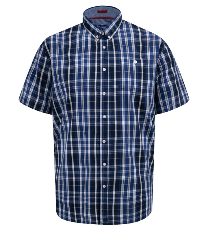 WALSALL-D555 Navy Check Button Down Collar S/S Shirt With Pocket