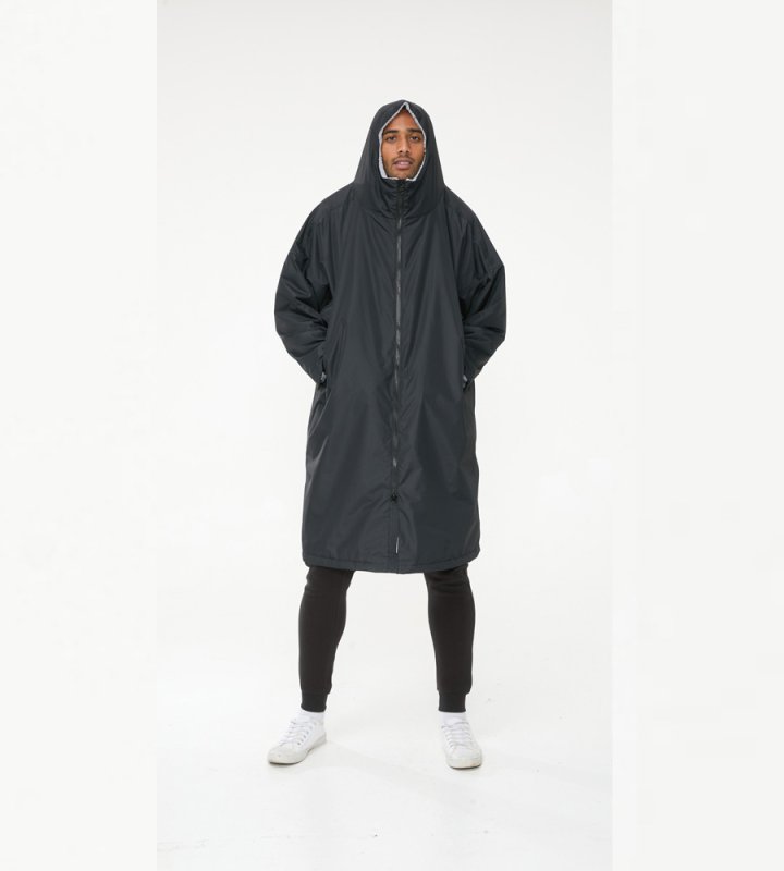 Discover the versatility of the WEBBER - D555 Changing Robe, a perfect blend of functionality and warmth for those who love the outdoors. This robe boasts a sherpa fleece lining for superior warmth, complemented by a polyester exterior with taped seams to shield you from rain and wind. Equipped with multiple pockets for convenient storage, the robe's black colour is not only sophisticated but also adaptable to a variety of environments—from casual strolls to school runs to providing quick shelter by the beach, pool, or on the trail.