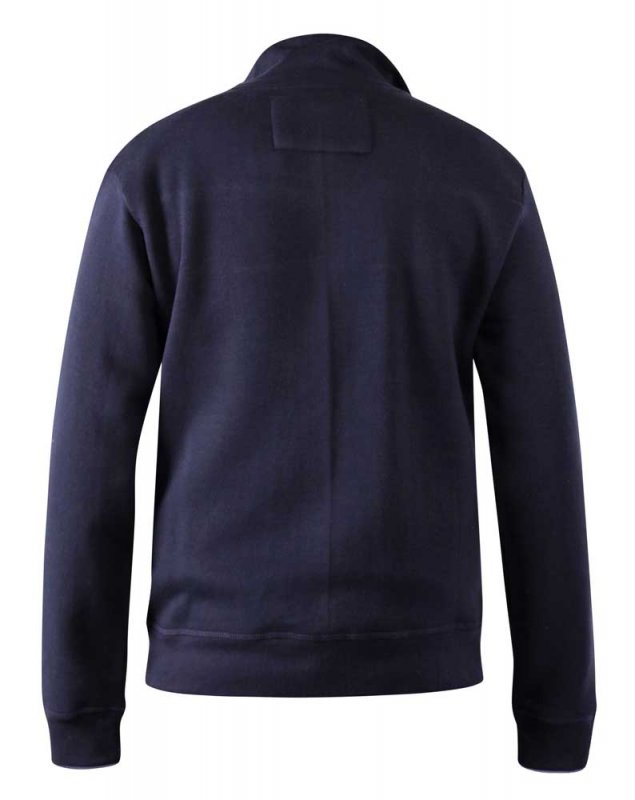 The sweatshirt is made from a blend of 60% cotton and 40% polyester, providing a comfortable and durable material that is easy to care for. The navy color of the sweatshirt is a timeless and versatile choice that can be paired with a variety of different outfits.