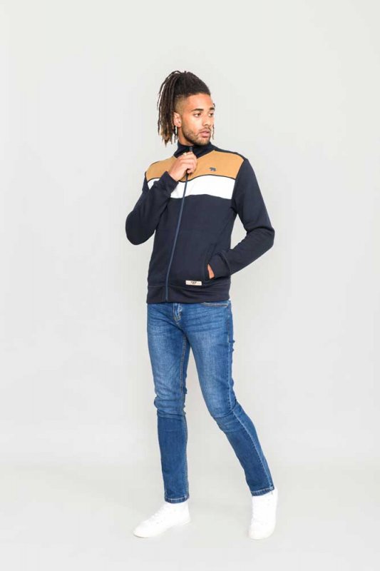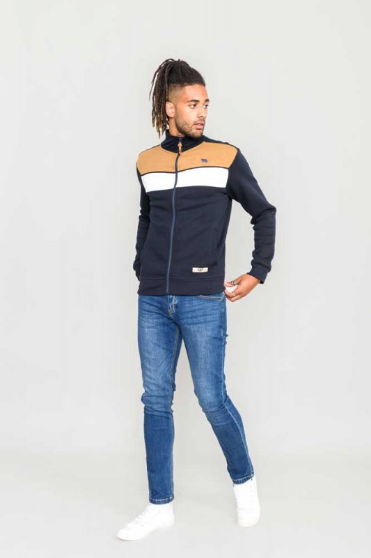 The "WILLOWBROOK-D555 Cut And Sew Full Zipper Sweatshirt" is a product of The Duke Clothing Co under their D555 brand. This sweatshirt features a stylish and unique cut-and-sew design and a convenient Full Zipper.